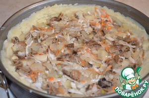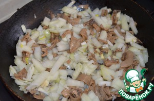 Для начинки - обжарить грибы с нарезанным репчатым луком в 2ст. л. растительного масла