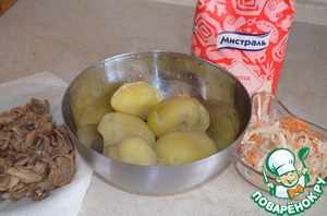 Картофель предварительно отварить, немного остудить и очистить. Я чистила совсем горячую картошку - немного неудобно, зато пюре потом мнется легко