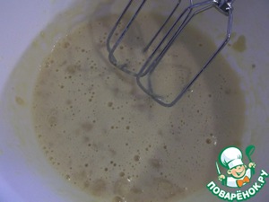 Добавим маргарин (сл. масло), сахар, ванильный сахар, соль и ароматизатор ( я не добавляла) и взбиваем до тех пор, пока сахар не растворится.