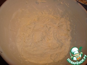 Сливки взбить с сахаром, добавить творожную массу и перемешать.