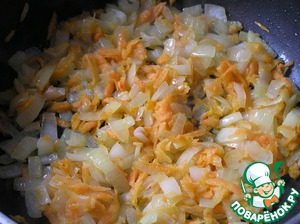 Тем временем на растительном масле обжарить нарезанный лук, добавить натертую морковь, обжаривать еще 3-4 минуты.