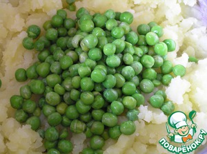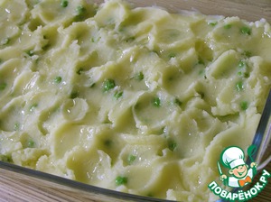 Сверху выложить картофель с горошком, сбрызнуть маслом.