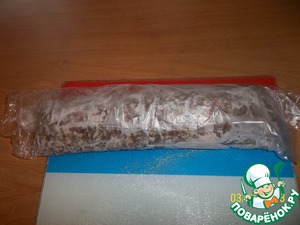 Рулет заворачиваем в эту же пленку и убираем в морозильную камеру на 3-4 часа.