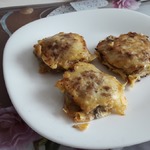 Слегка прихлопываем ладошкой сыр, что бы он немного прилип.