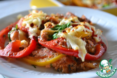Кружочки болгарского перца обжарить на сковороде до мягкости. Выложить на лук.