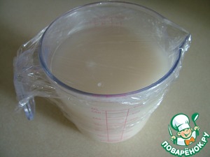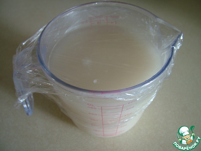 Накройте пленкой и оставьте опару в теплом месте на полчаса.