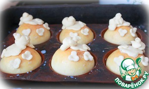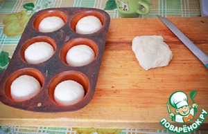 Тесто разделяем на кусочки примерно по 50 гр. подкатываем их в кругляшки и раскладываем в силиконовые формочки для кексов.