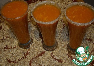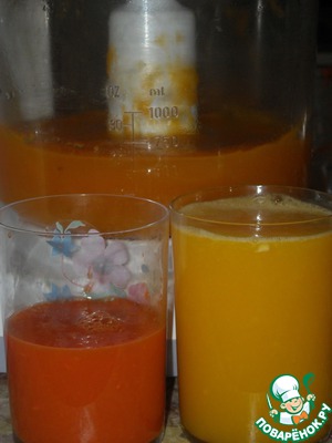 Тыкву в блендере превратить в пюре + стакан цитрусового сока + 0,5 стакана свежеприготовленного морковного сока. Добавить бананы, мед и корицу и все перемешать.