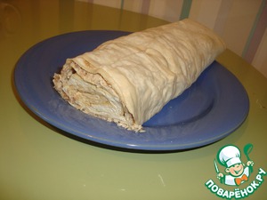 Получившийся рулет ставим в холодильник минимум на час, чтобы он пропитался