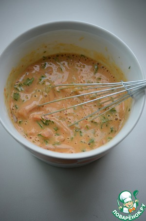 • Яйца взбить с томатной пастой и майонезом.