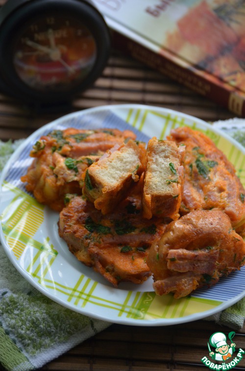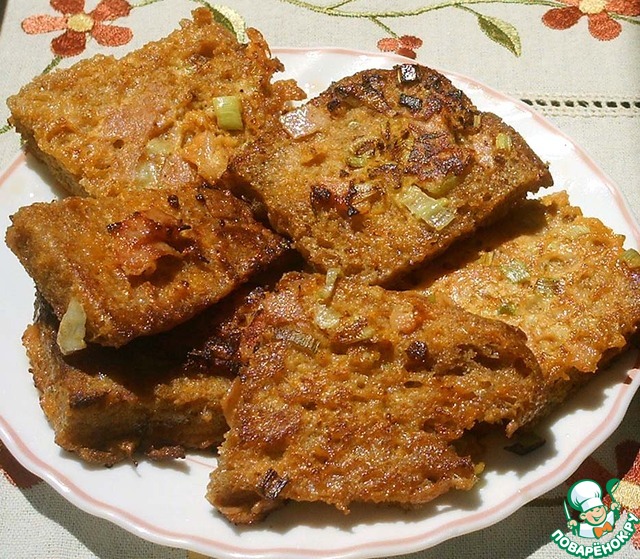 Кусочки багета (батона) обмакнуть в приготовленную смесь