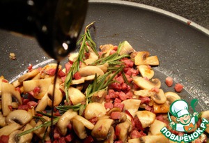 Разогрейте оливковое масло и обжарьте все приготовленные продукты мин.5-10. Добавьте бальзамический уксус, перец и если у вас слабосоленый бекон, то еще и соль. Отставьте в сторону