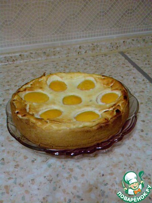 Начинка: Творог, сметану, сахар, ванильный сах., яйца, крахмал и цедру с лимона-взбить до однородной массы