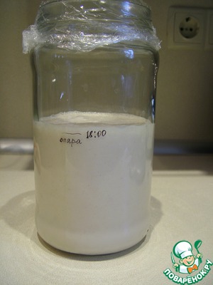 Накройте пленкой и оставьте при комнатной температуре (оптимально 20-24С) на 3-4 часа, пока закваска не поднимется в 2 раза.
