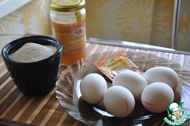 • Смешиваем яйца, ваниль, мед и сахар. Взбиваем миксером.