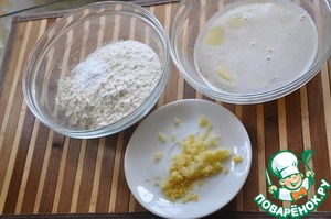 • Муку смешиваем с разрыхлителем. Масло топим. С половинки лимона трем цедру.