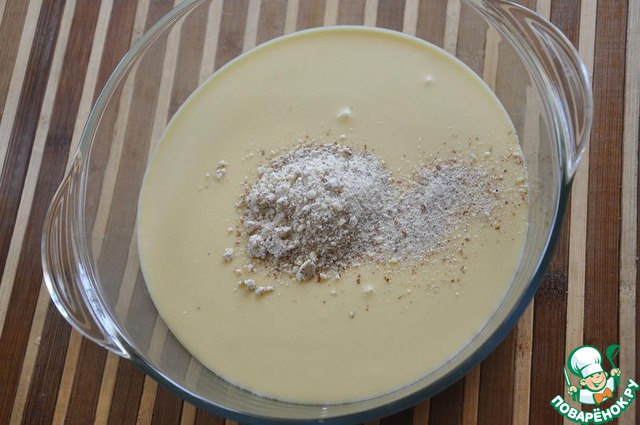 • Смешиваем все. Миндаль очень мелко дробим и добавляем в тесто. Накрываем пленкой и убираем в холодильник на 30 мин.