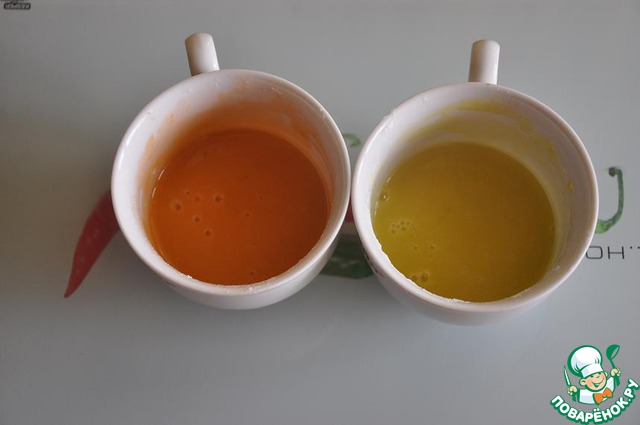 • Делаем глазурь. Основу ее взяла у irina_vip. http://www.povarenok .ru/recipes/show/588 34/. Но поскольку нам нужна не шоколадная, а цитрусовая, немного изменила) В чашку выдавливаем сок половины лимона и трем туда же цедру. В другую выдавливаем половину апельсина и тоже трем цедру.