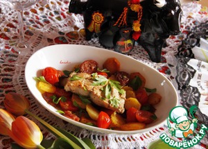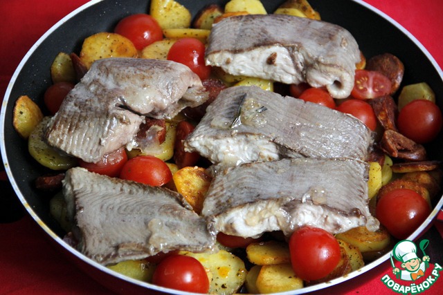 Танюш, в испанское паэлье, что только не намешают ,0 а результат всегда очень вкусный. Это более домашний вариант, попроще. Как девочки уже заметили, такую сковороду можно разобрать по запчастям в тарелки: кому-то - колбасу с картошкой, кому-то рыбку , но и всё вместе прекрасно звучит.