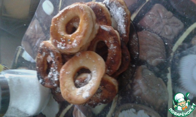 Жарим пончики с двух сторон, примерно по полминуты каждую сторону, до золотистого цвета.