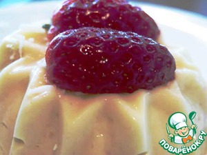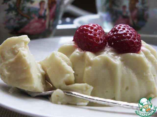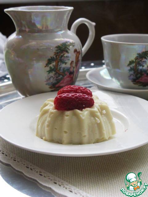 Охладить сначала при комнатной температуре, а затем несколько часов в холодильнике. По желанию украсить кокосовой стружкой и ягодами.