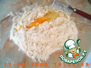 Смешиваем начинку, перетирая её руками. Делим на 4 части.