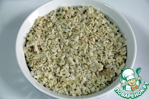Сначала готовим рис. Его можно приготовить заранее и держать в холодильнике. Для этого рис (я использовала коричневый рис фирмы "Мистраль") промываем в холодной воде, даем воде стечь и кладем в глубокую сковороду. Хорошо смешиваем рис с растительным маслом. Затем добавляем соль (по вкусу) и воду в соотношении 1:2 (на стакан риса берем 2 стакана воды). Закрываем крышкой и варим на медленном огне до полного испарения воды.