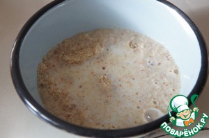 Сухари залить молоком, перемешать и отставить на 10 минут.