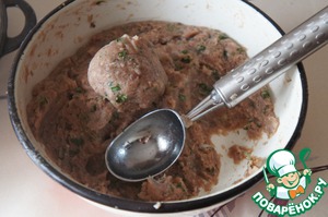 Фарш пропустить через мясорубку (я еще добавила 1 луковицу). Добавить набухшие сухари и остальные ингредиенты для шариков.