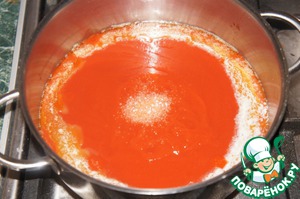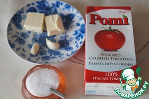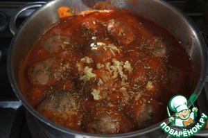Пока шарики запекаются, приготовить соус. Я вместо томатов в собственном соку использовала томаты фирмы Pomito. Очень удобно, уже протертые свежие томаты, без кожицы... просто супер-продукт. Бывает еще с чесноком и с базиликом.