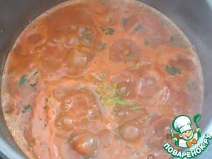 Добавьте томаты, томатную пасту и чуть петрушки.