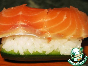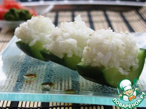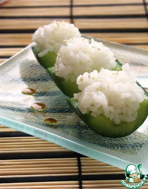 Такую закусочку можно приготовить с рыбой, а можно и без. По вкусу похоже на суши, но больше привлекает к себе оригинальностью подачи. Идею раздобыла где-то на просторах интернета.