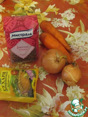 • Главные ингредиенты блюда: фасоль кидни "Мистраль", морковь, лук. Мука и панировочные сухари потребуются для придания котлеткам формы.