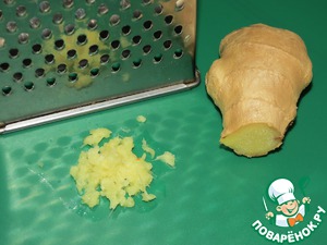 Корень имбиря натереть на мелкой терке и выложить на грушу.
