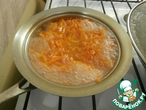 Нарезанную морковь опускаю в кипящую воду и бланширую 5 минут (строго пять минут), после чего откидываю на дуршлаг, чтобы стекла вода и остыла.