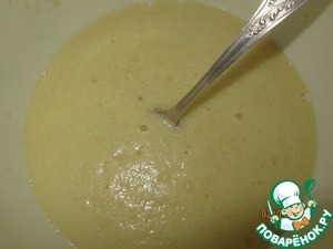 Тщательно перемешать. Добавить муку — медленно, помешивая венчиком.