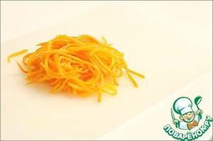 Порубить морковь. Я использовала морковь по-корейски. Для остроты.