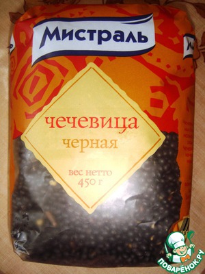 Нам понадобится черная чечевица от компании Мистраль, она очень красивая и нарядная, хорошо держит форму в готовом виде и имеет невероятный ореховый вкус и аромат
