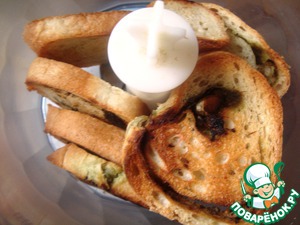 Для приготовления начинки нам также понадобятся сухарики - я просто нарезала ломтиками багет и подсушила его на сухой сковородке