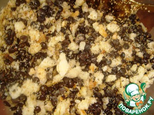 Добавляем нарезанный помидор, чеснок и анчоусы к чечевице с крошками, немного солим и поливаем оливковым маслом, перемешиваем - и начинка готова