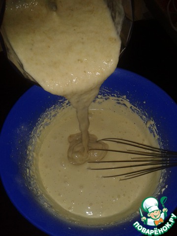 • В полученную массу вылить бананы и быстро перемешать венчиком (миксером не желательно).