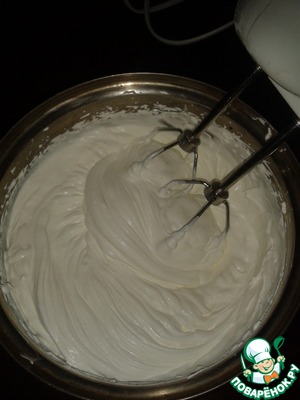 • Так-же в отдельной миске сбить сливки с одной чайной ложкой сахара. До устойчивой консистенции.