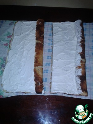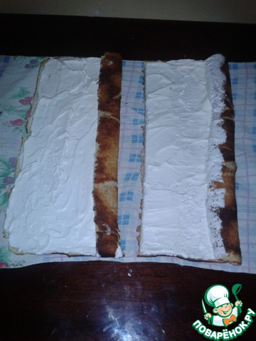 • Бисквит намазать кремом (оставить немножко крема для украшения).