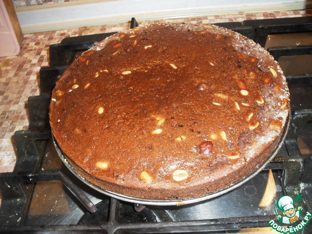 После того, как коврижка испеклась, достаем ее из духовки и даем полностью остыть и разрезаем на 2 коржа.
