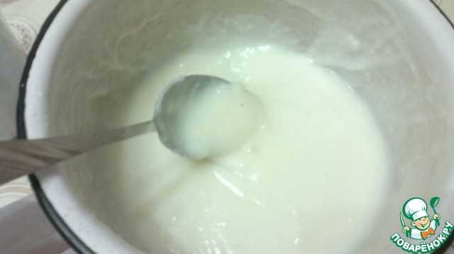 В оставшиеся 100 мл молока добавить 1,5 ст. ложки крахмала
