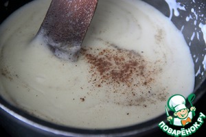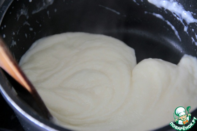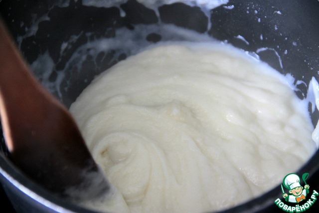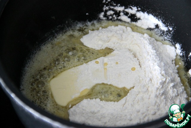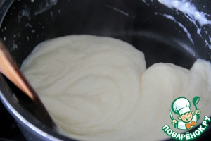 и непрерывно вмешивать её в масляно-мучную смесь.