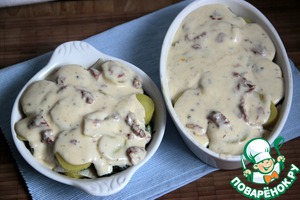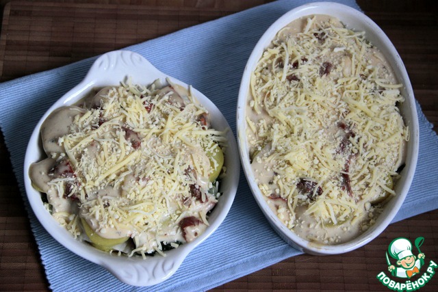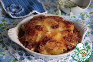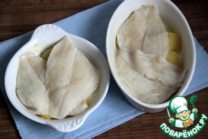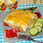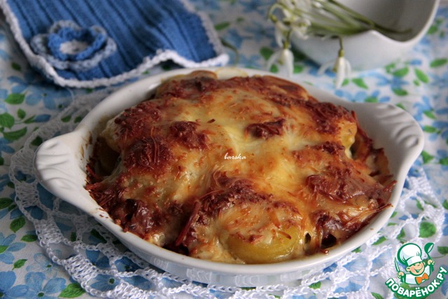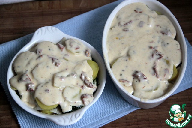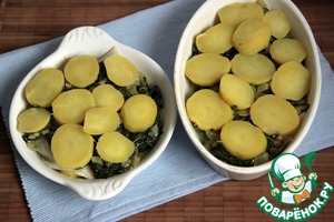 Гратин из картофеля и камбалы под соусом из горгонзолы