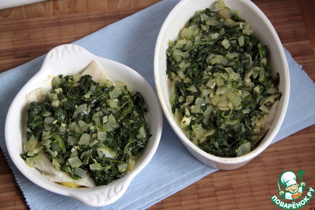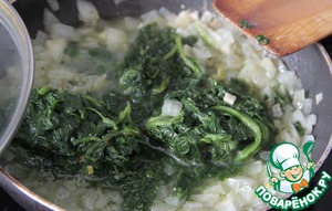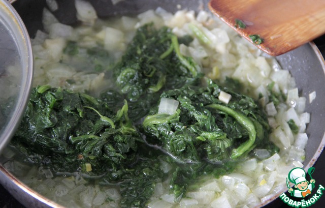 Если готовите со свежим шпинатом, то воду не добавлять и время тушения уменьшить до 3-4 мин.