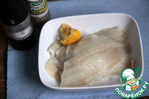 Замариновать филе рыбы ( у меня - мелкая камбала) в лимонном соке, соли и белом молотом переце