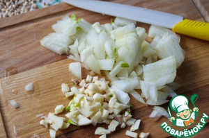 Репчатый лук и чеснок нарезать.